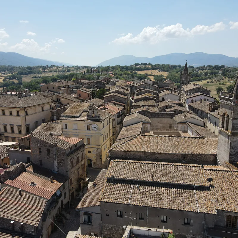 The two beautiful bell towers that rise from the village draw attention, standing out against the panorama. To reach the village, one must take a detour from the Via Flaminia state road (towards Narni) and then take the road, lined with rich tree vegetation, that ascends to the village.