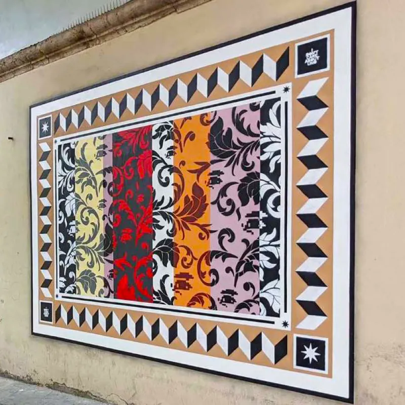 The work, an acrylic painting on the wall, is 3x6 metres in size.